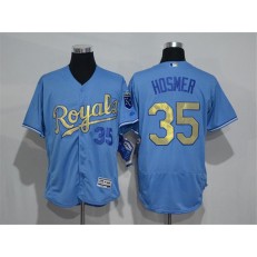 MLB Kansas City Royals 35 Eric Hosmer Light Blue 2015 World Series Champions Gold Program FlexBase Men Jersey