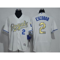 MLB Kansas City Royals 2 Alcides Escobar White World Series Champions Gold Program FlexBase Player Men Jersey