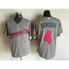 MLB Kansas City Royals 4 Alex Gordon Gray With Pink 2016 Mother's Day Baseball Cool Base Men Jersey