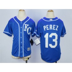 MLB Kansas City Royals 13 Salvador Perez Light Blue Cool Base Baseball Youth Jersey