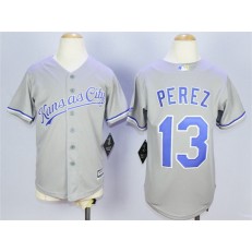 MLB Kansas City Royals 13 Salvador Perez Grey Road 2015 Cool Base Youth Jersey