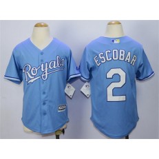 MLB Kansas City Royals 2 Alcides Escobar Light Blue Cool Base Baseball Youth Jersey