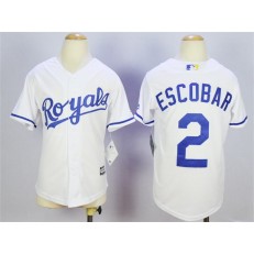MLB Kansas City Royals 2 Alcides Escobar White 2015 Cool Base Youth Jersey