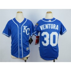 MLB Kansas City Royals 30 Yordano Ventura Alternate Blue KC 2015 Cool Base Youth Jersey
