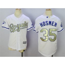 MLB Kansas City Royals 35 Eric Hosmer White World Series Champions Gold Program Majestic Youth Jersey