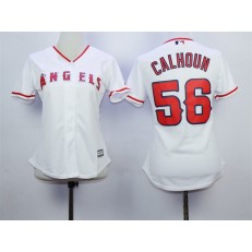 MLB LA Angels Of Anaheim 56 Kole Calhoun Home White 2015 Cool Base Women Jersey