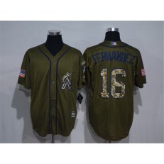MLB Miami Marlins 16 Jose Fernandez Green Salute to Service Cool Base Stitched Men Jersey