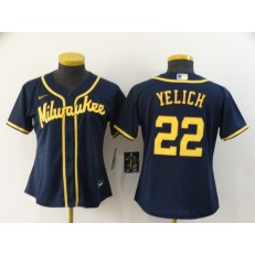 MLB Milwaukee Brewers #22 Christian Yelich Navy Women Nike 2020 Cool Base Jersey