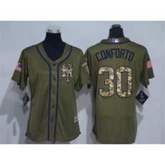 MLB New York Mets 30 Michael Conforto Green Salute to Service Majestic Baseball Women Jersey