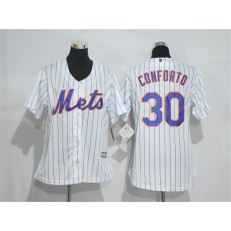 MLB New York Mets 30 Michael Conforto White With Blue Strip Women Jersey