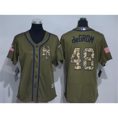 MLB New York Mets 48 Jacob deGrom Green Salute to Service Majestic Baseball Women Jersey