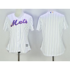 MLB New York Mets Blank White With Blue Strip Women Jersey