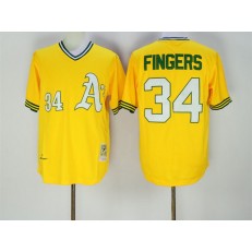 MLB Mitchell And Ness Oakland Athletics 34 Rollie Fingers 1972 Majestic Cooperstown Yellow Throwback Men Jersey