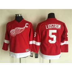 Detroit Red Wings #5 Nicklas Lidstrom Red CCM Throwback Stitched Youth NHL Jersey